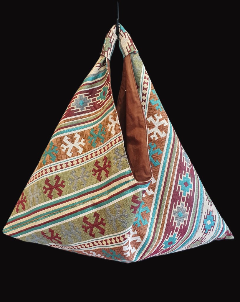 Μοναδική, ευρύχωρη τσάντα σε τριγωνικό σχήμα για πολλαπλές χρήσεις. Πολύ ανθεκτική. Unique, spacious, triangle-shaped bag for multiple uses. Very durable