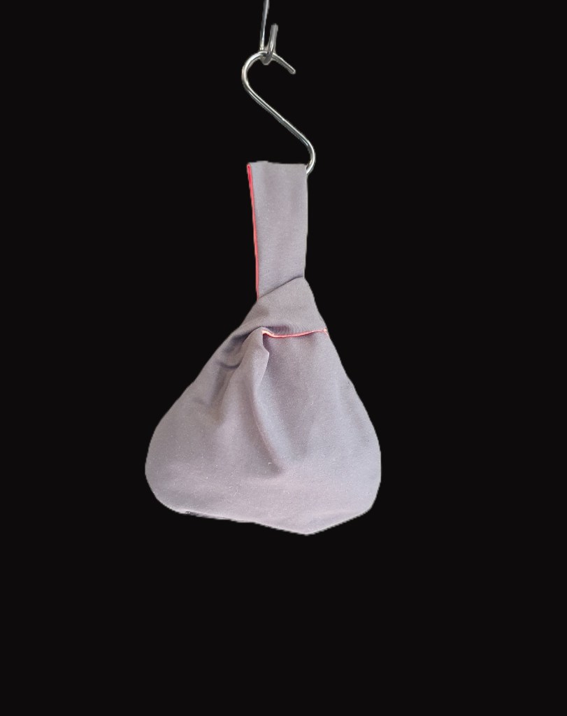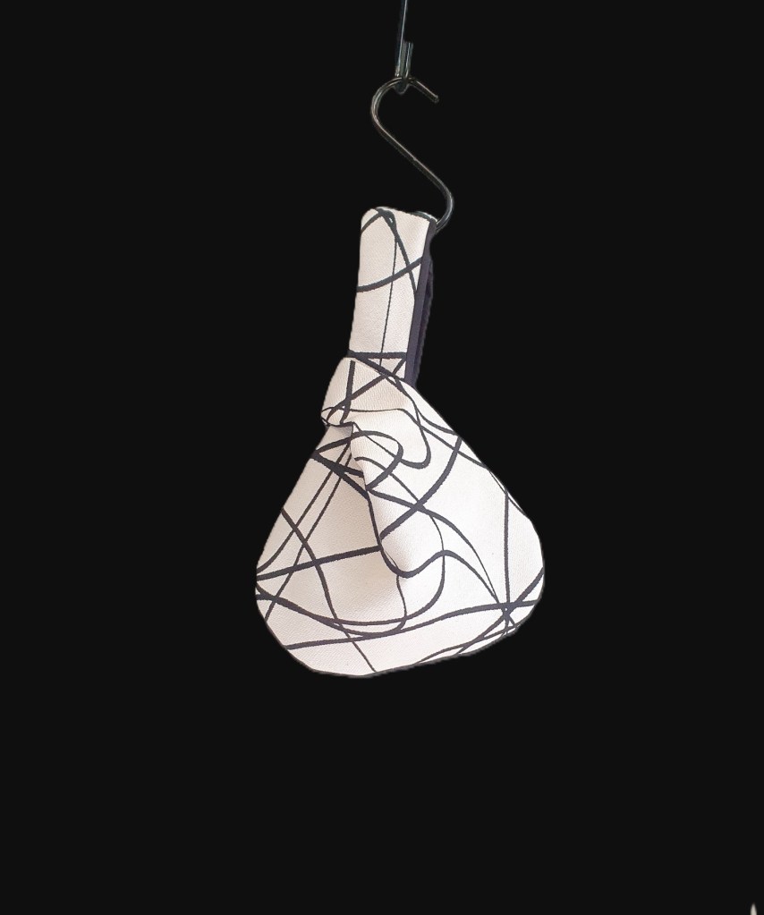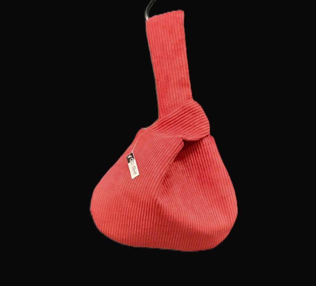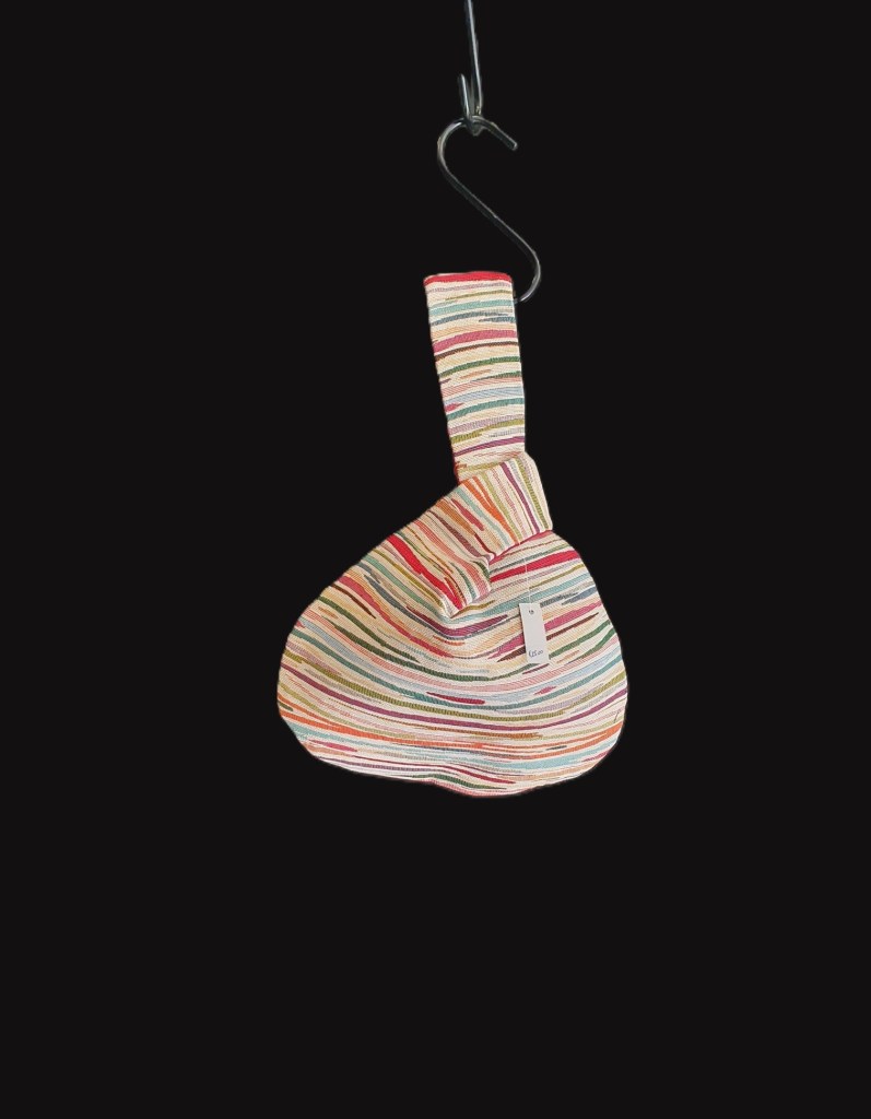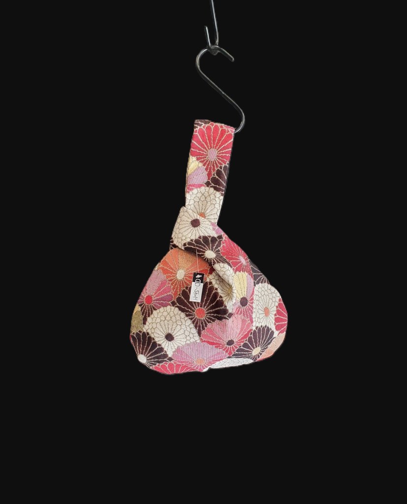 Japanese knot bag style that can be worn on the wrist. Big enough for a wallet, phone and emergency makeup.
