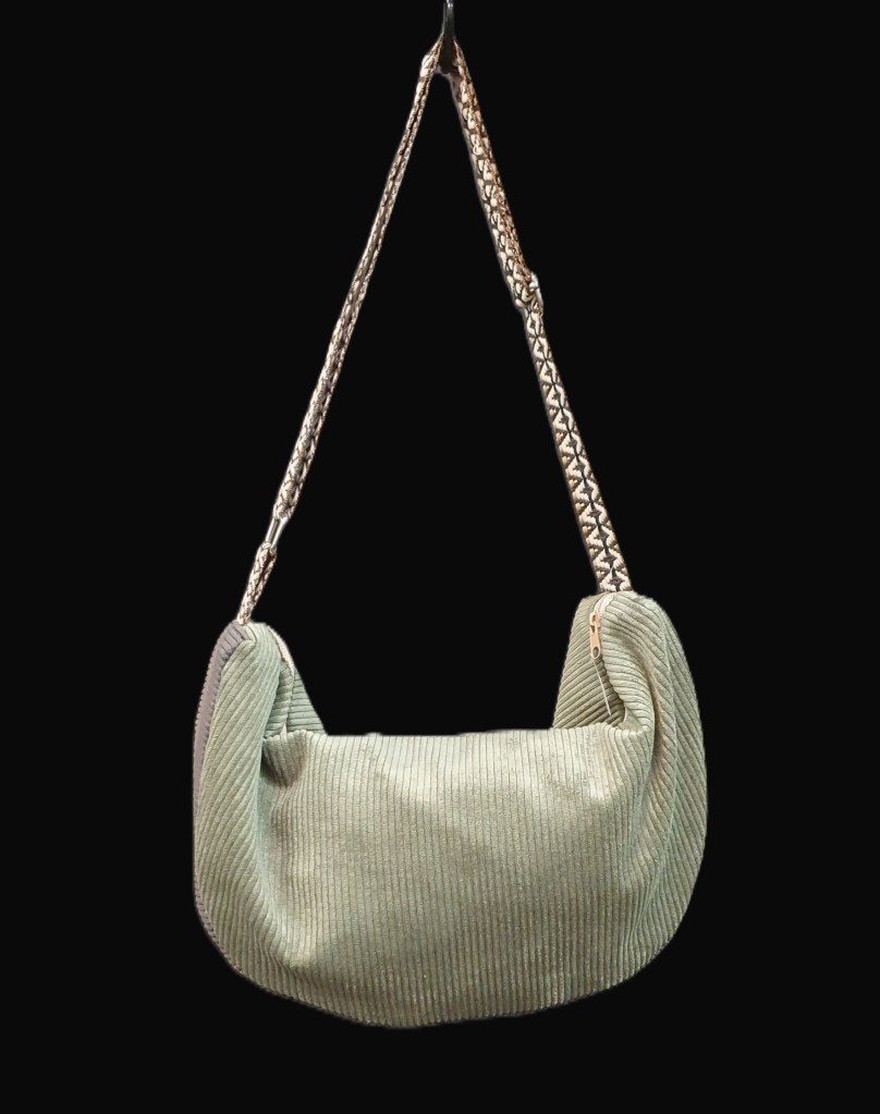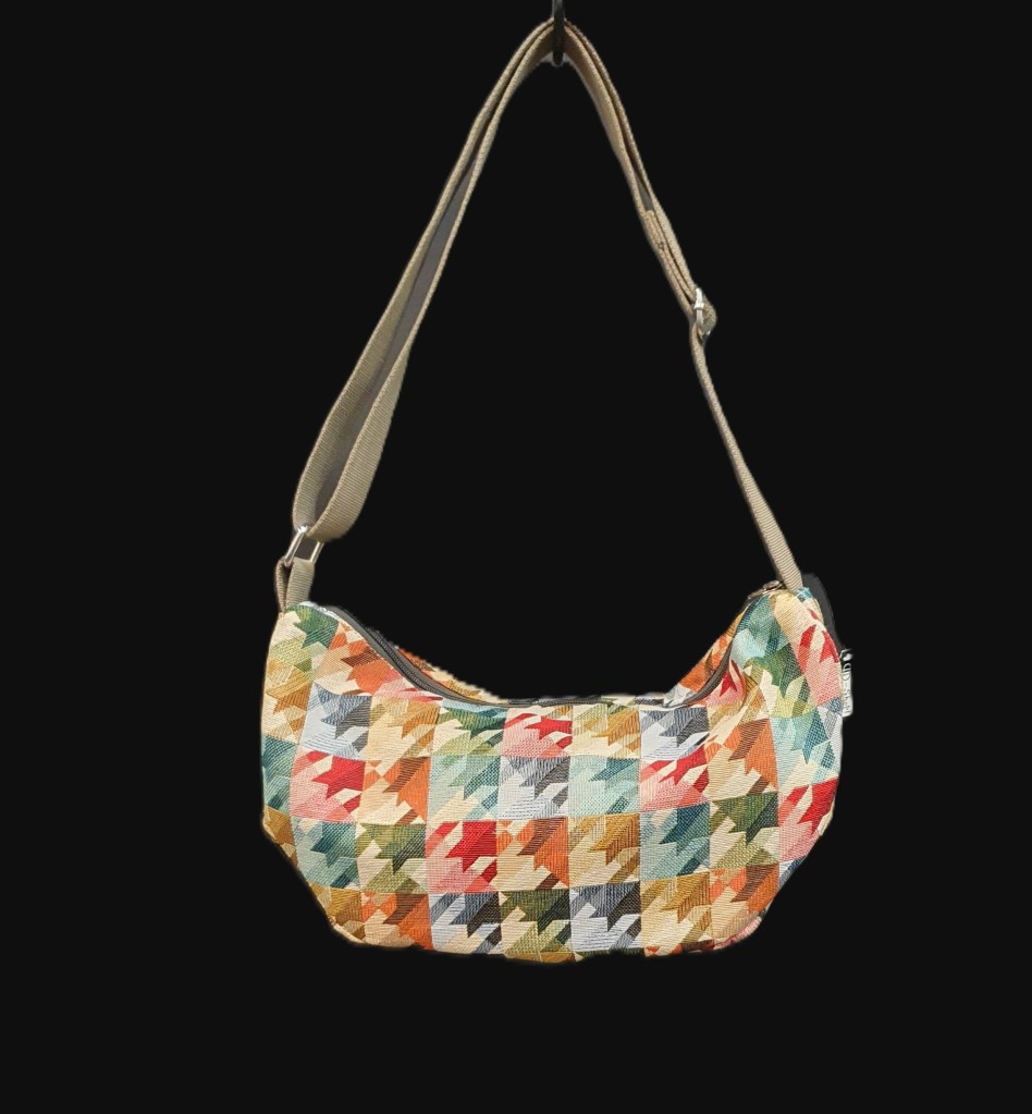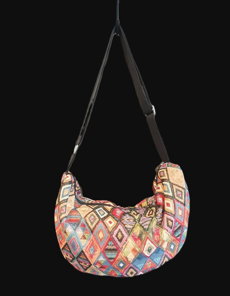 Ευρύχωρη τσάντα χιαστί, σε σχήμα μπανάνας με ρυθμιζόμενο λουράκι. Μπορεί να φορεθεί μπροστά ή πίσω. Crossbody, banana shaped spacious bag with adjustable strap. Can be worn in front or in the back.